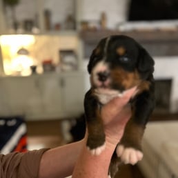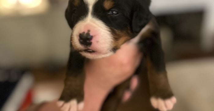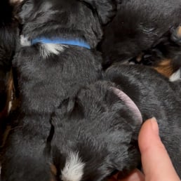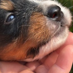 Open your beautiful eyes, sweet pup, and see the amazing world into which you've been born! Pups opened their eyes for the first time and NOW the little personalities begin to take shape! They are all still crawling around on their chubby tummies, using their legs to pull and push them along the floor of the whelping box. Still too tiny to even attempt climbing out of the box. But they can tell when mommy is with them, and when she's taking a well-deserved break!