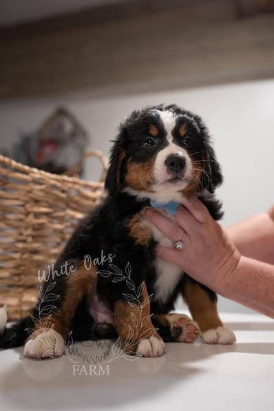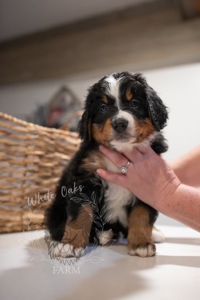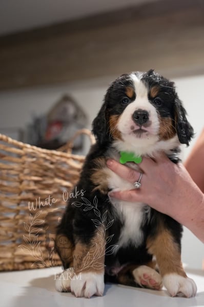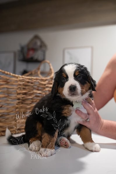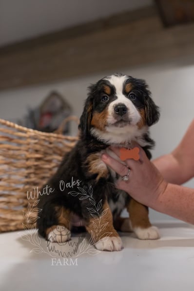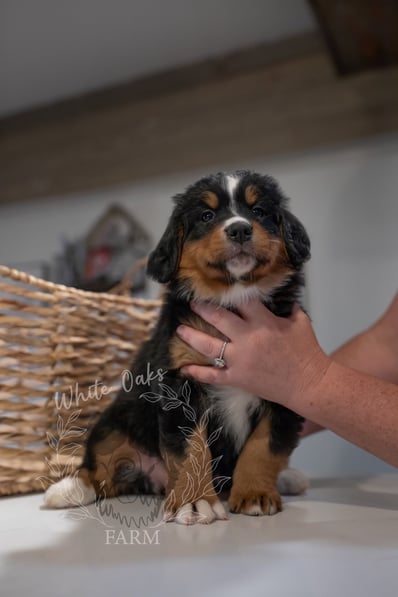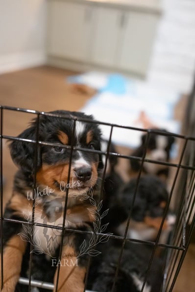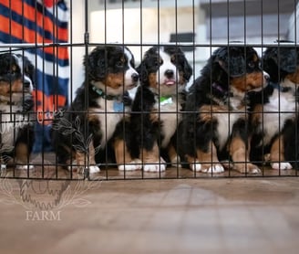 Personalities are really apparent now during this week of continued transitions! Pups are loving their food and getting plenty of water, but of course they still need their mom and they get plenty of love and affection from her and dad too. Our handling of the pups several times a day is also something they AND WE look forward to! Soft toys are "shared" with the tug-o-war winner prancing around with the prize in their mouth. Harder toys like plastic bones are becoming more popular as the pups seek out new things to gnaw as their romping and playing reaches a new level of puppy intensity!